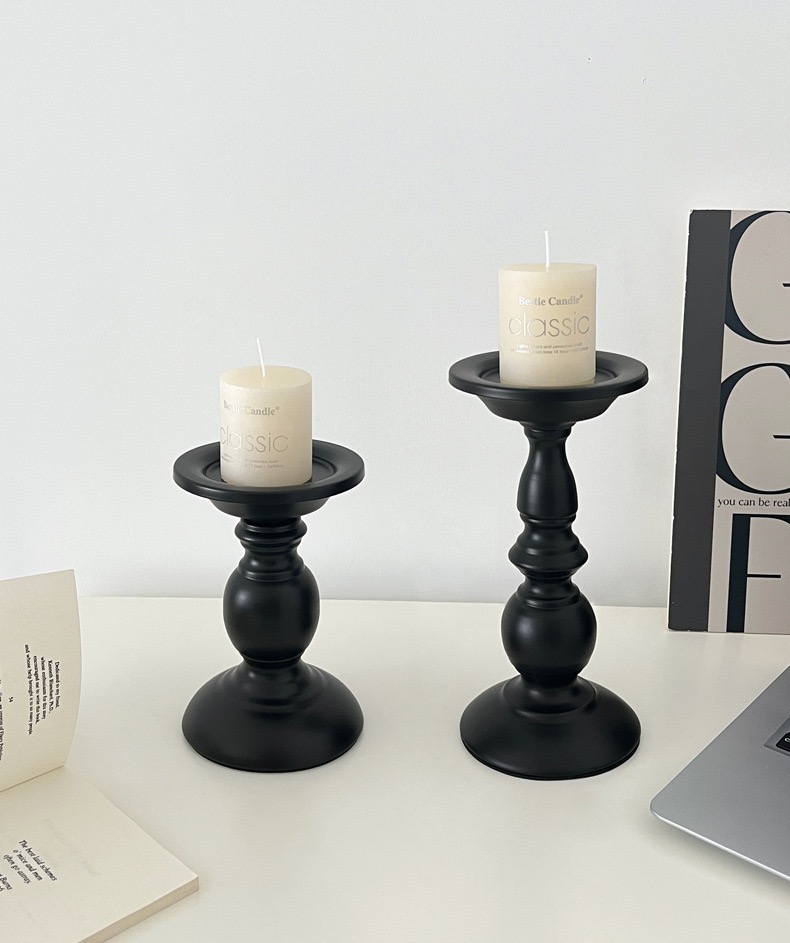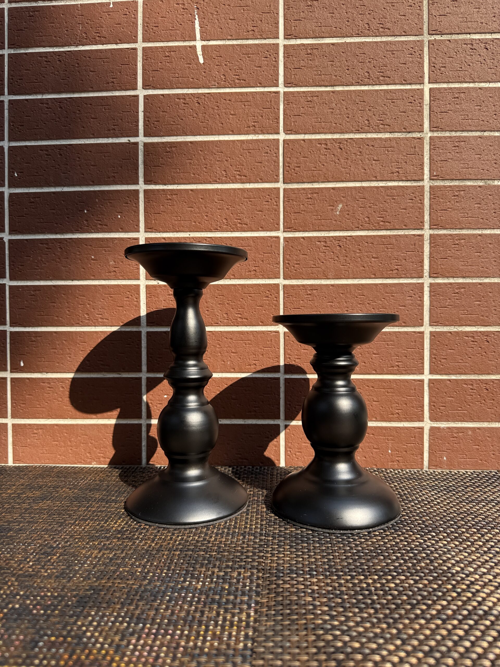 a timeless set of matte black candle holders designed to bring quiet sophistication to any space. With their elegant curves and sturdy bases, these holders pair beautifully with pillar candles to create a warm, romantic glow. Ideal for both modern minimalists and lovers of classic décor, this set elevates everyday ambience with effortless charm.